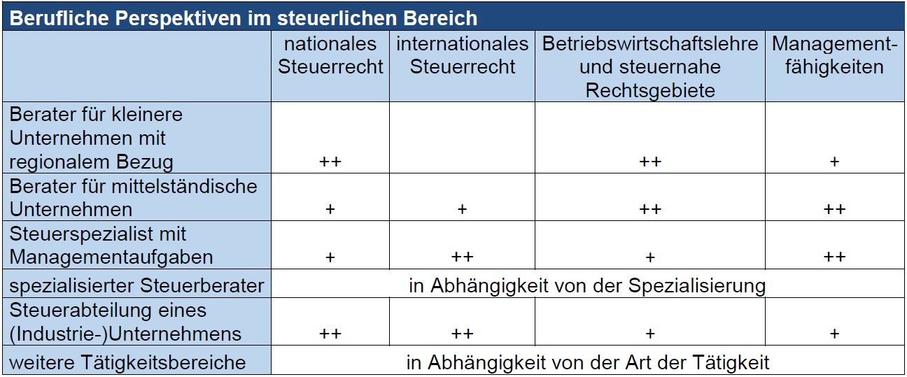 Berufliche Perspektiven für Absolventen mit dem Schwerpunkt Taxation